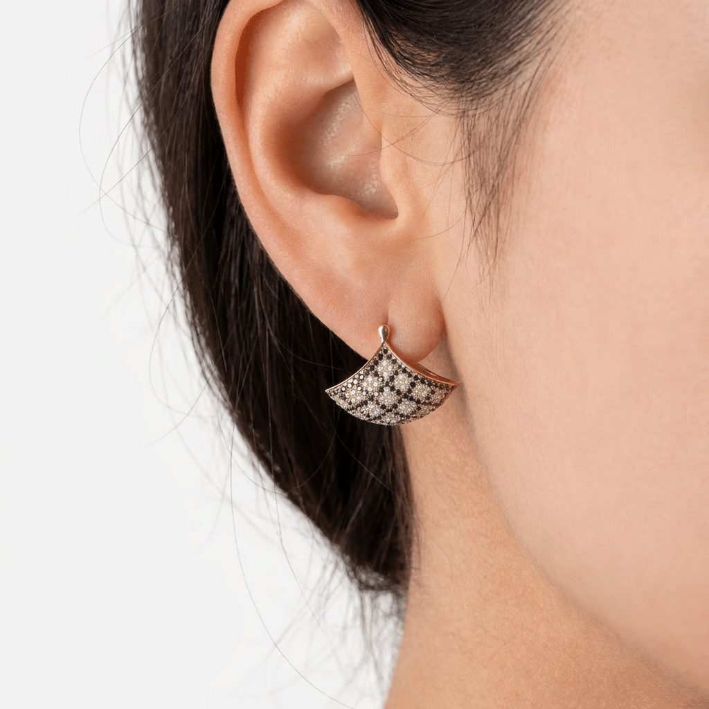 Harlequin Pattern Sovereign Moissanite Huggie Earring