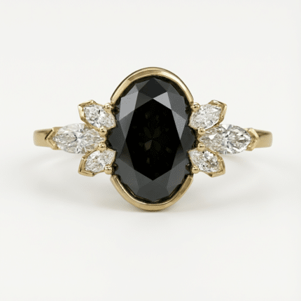Round and Marquise Black Cluster Moissanite Ring