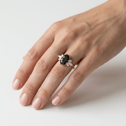 Oval Black Florine Moissanite Ring